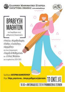 ΒΡΑΒΕΥΣΗ ΜΑΘΗΤΩΝ ΠΟΥ ΔΙΑΚΡΙΘΗΚΑΝ ΣΕ ΔΙΑΓΩΝΙΣΜΟΥΣ ΤΗΣ ΕΛΛΗΝΙΚΗΣ ΜΑΘΗΜΑΤΙΚΗΣ ΕΤΑΙΡΕΙΑΣ